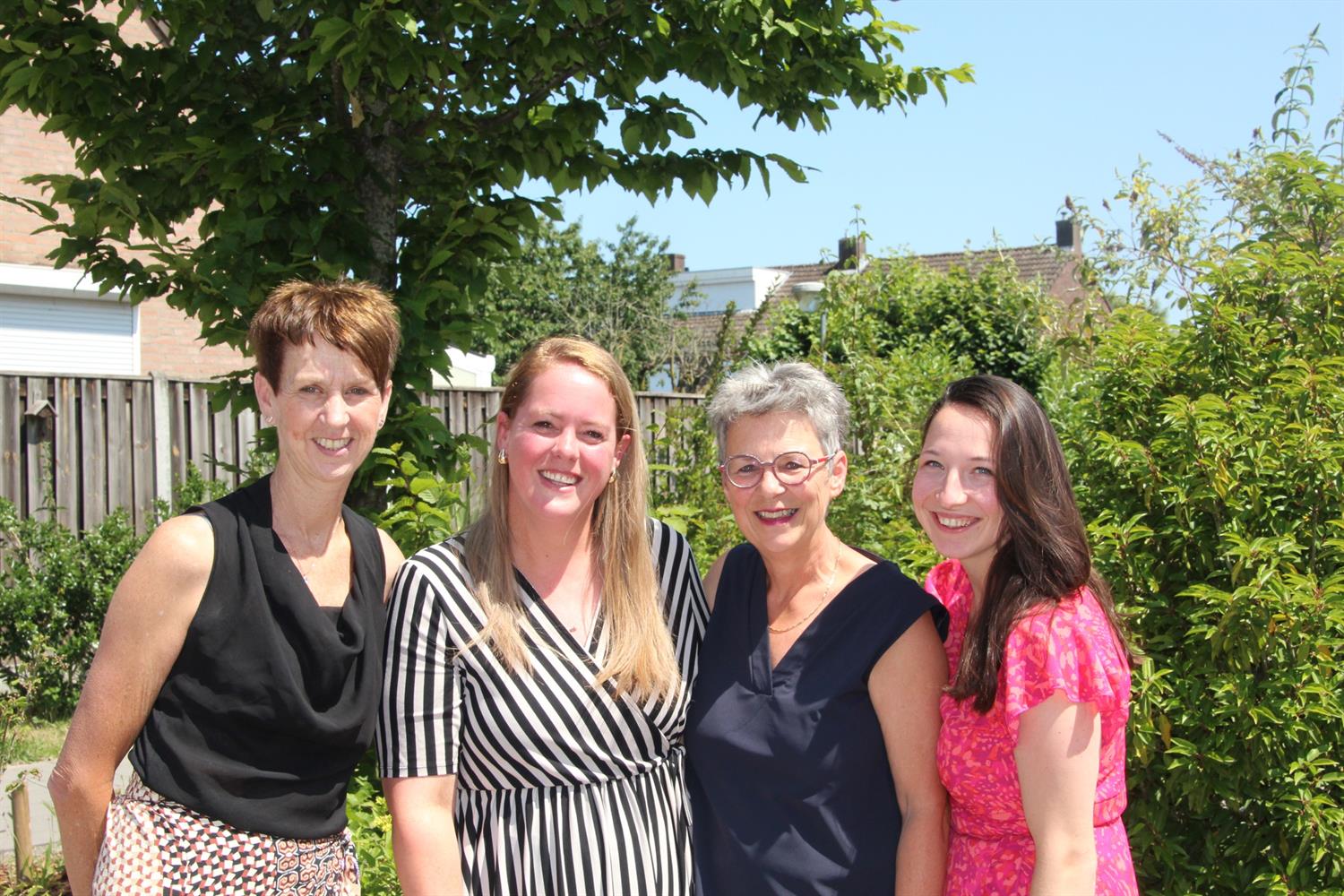 Van links naar rechts: Carin Kiggen - van Dael (ondersteuning 1-2 en NT2-specialist), Kelly Stevens (groep 1-2B), Helma Peeters - Snijders (groep 1-2A) en Elfrie van Lierop (groep 1-2A en groep 1-2B).
